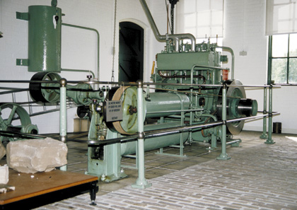 De Bronsmotor in het gemaal is een 3 cilinder van het type EA. Dit type was in 1, 2, 3 en 4 cilinders verkrijgbaar. De dieselmotor van het gemaal lag vier jaar als ‘oud vuil’ op het erf van de firma Telkamp in Woldendorp. De Stichting Nieuwolda kwam voor een prikje in het bezit van de motor. Die werd vervolgens helemaal opgeknapt in de werkplaats van wat toen nog Waterschap Duurswold was. Dit waterschap bezat ook nog luchtketels en een compressor uit in 1970 gesloopte gemalen. De drijvende kracht achter de restauratie van de motor was de heer Rollema, .een expert op het gebied van dieselmotoren. Hij verzamelde al jaren onderdelen uit oude gemalen. Mede daarmee maakte hij – deels in diensttijd, deels in zijn eigen tijd – de installatie in het gemaal weer tot een passend geheel.